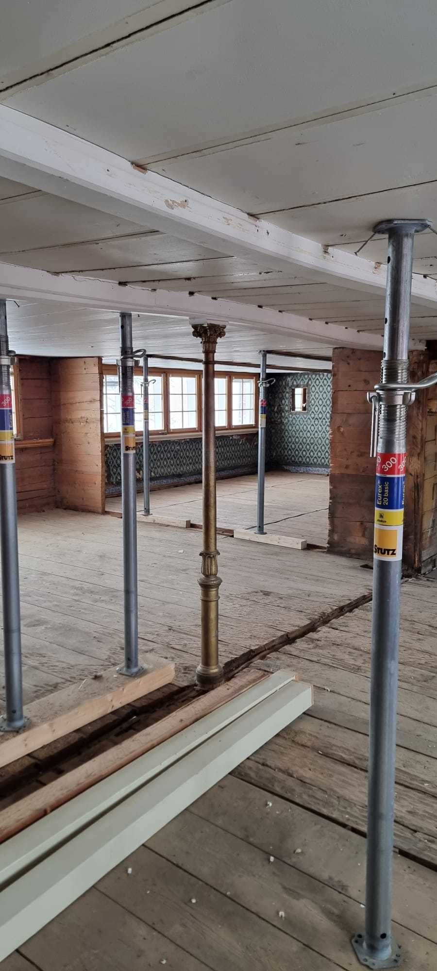 Holzbauer: Rückbau Wände und Decken im Schwanen. 3-D Vermessung Rosenhaus. Durch die Rückbauarbeiten stimmen teilweise die ursprünglichen Masse nicht mehr mit den Planungen überein. Dabei haben wir sogar etwas Positives entdeckt: In einigen Bereichen haben wir mehr Platz gewonnen, da Wände und Böden teilweise deutlich dicker waren als ursprünglich angenommen.
