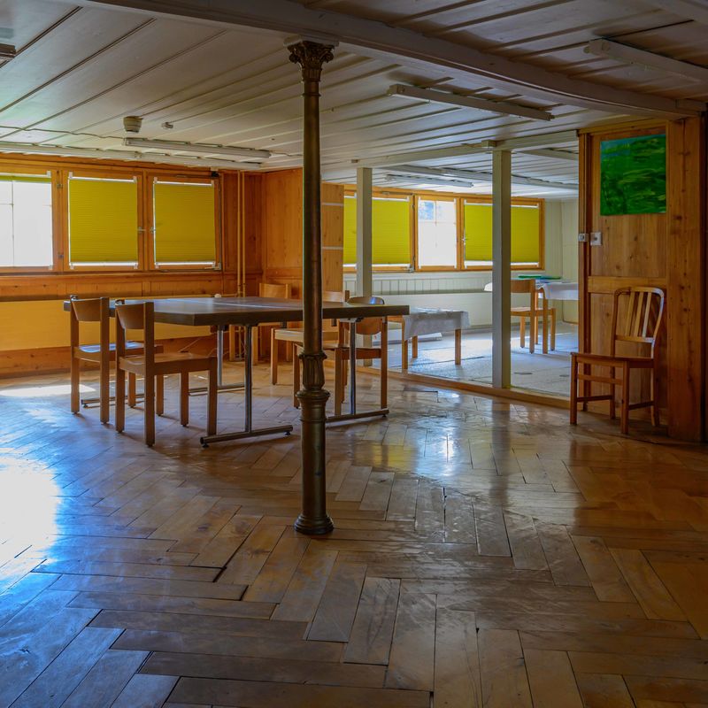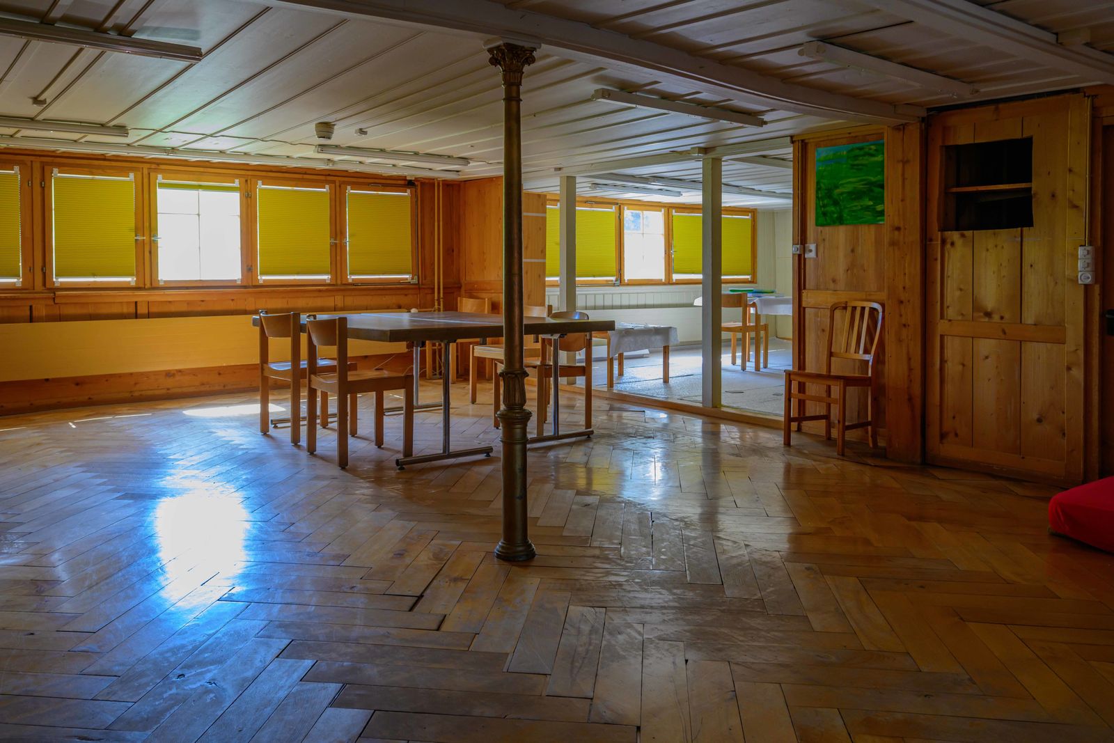 - Böden und Wandflächen zeigen deutliche Abnutzungsspuren und sind stellenweise stark renovierungsbedürftig.