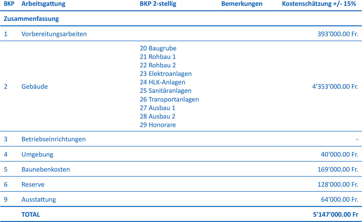 Die Gesamtkosten der Sanierung belaufen sich auf CHF 5'147’000